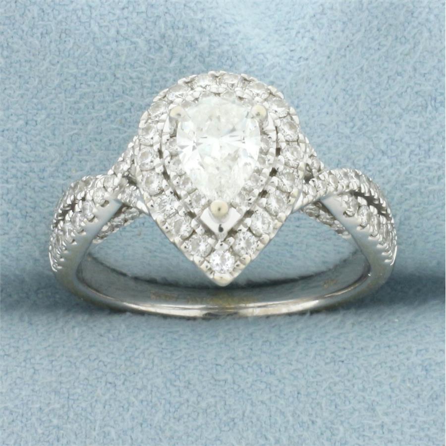 Vera Wang Love Collection Pear Diamond Double Halo Twist Engagement Ring in 14k White Gold