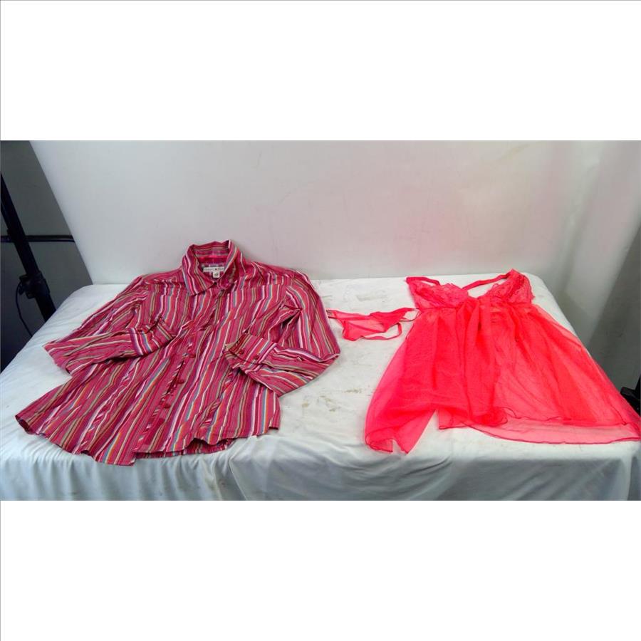 Get a great deal with this online auction presented by PropertyRoom.com on behalf of a law enforcement or public agency client. - Style: Lingerie 2-Piece Set, Pink Striped Button-Up