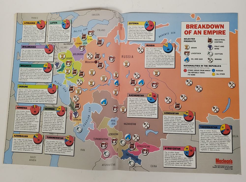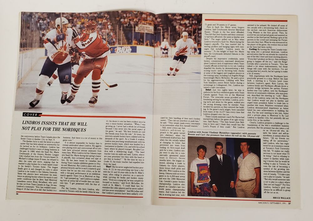 Vintage Canada Sept 9 1991 Maclean's Magazine lucky Lindros & Pullout Map