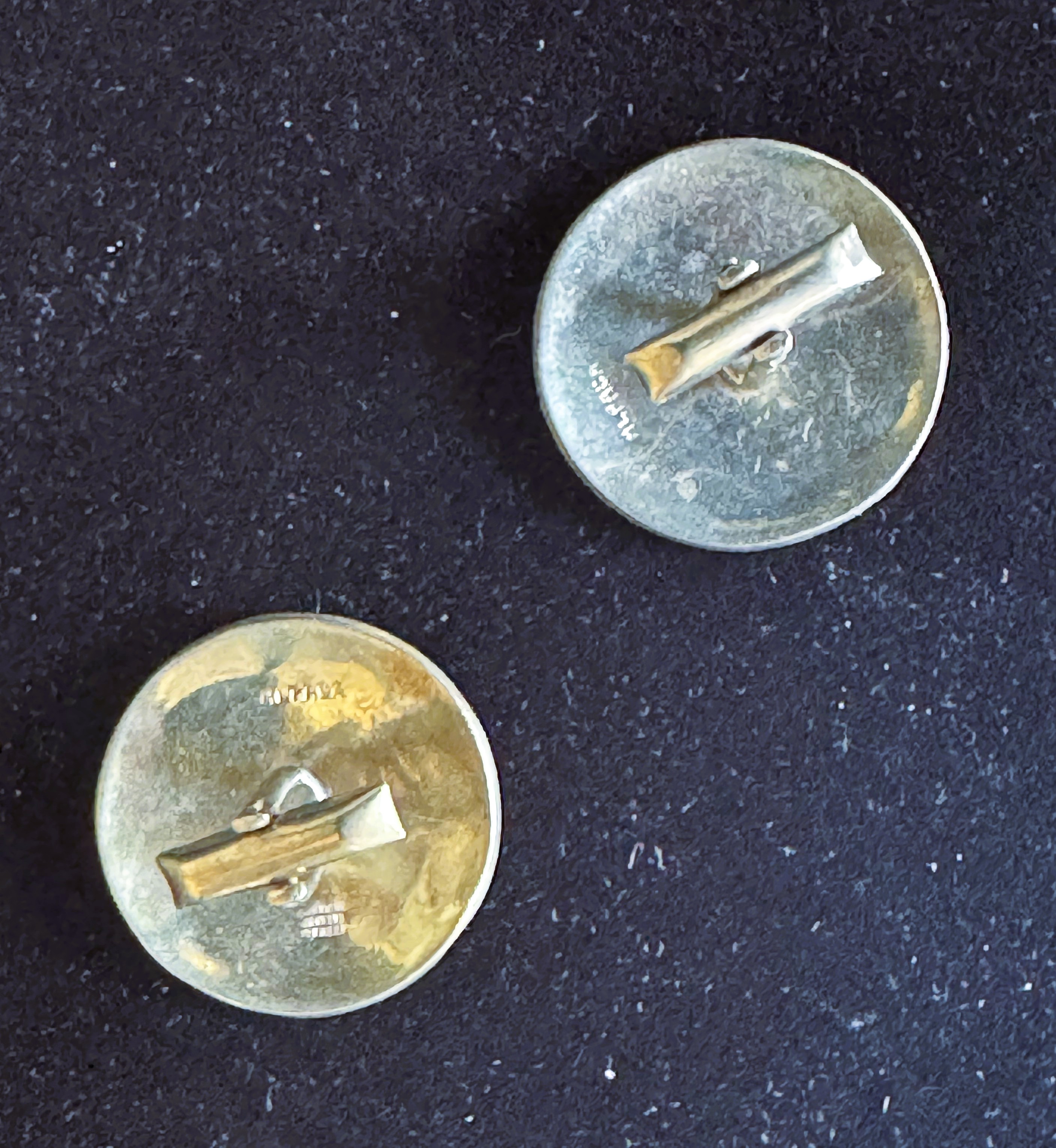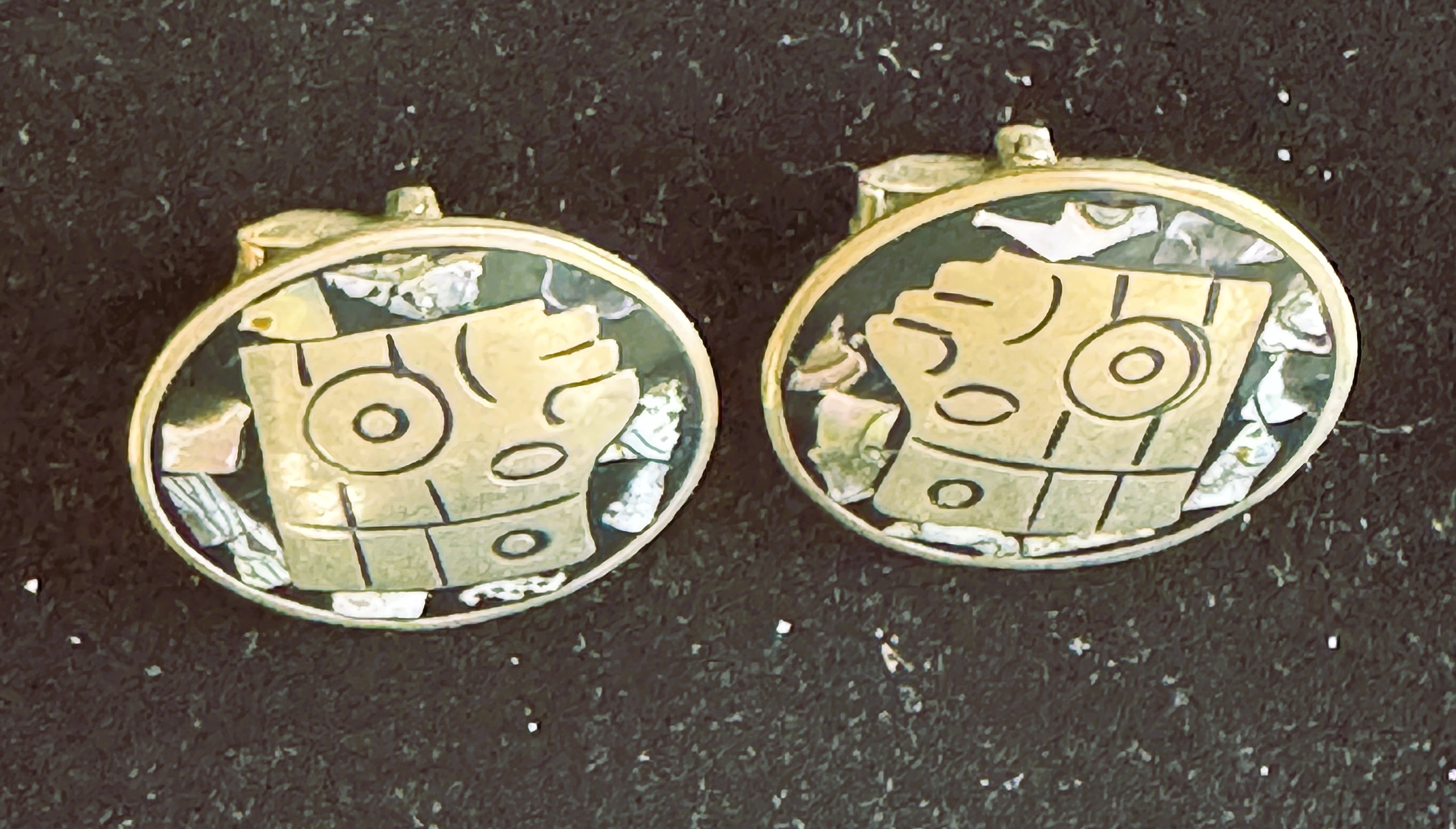 VINTAGE HECHO EN MEXICO SILVER ALPACA MARKED ABALONE CUFF LINKS