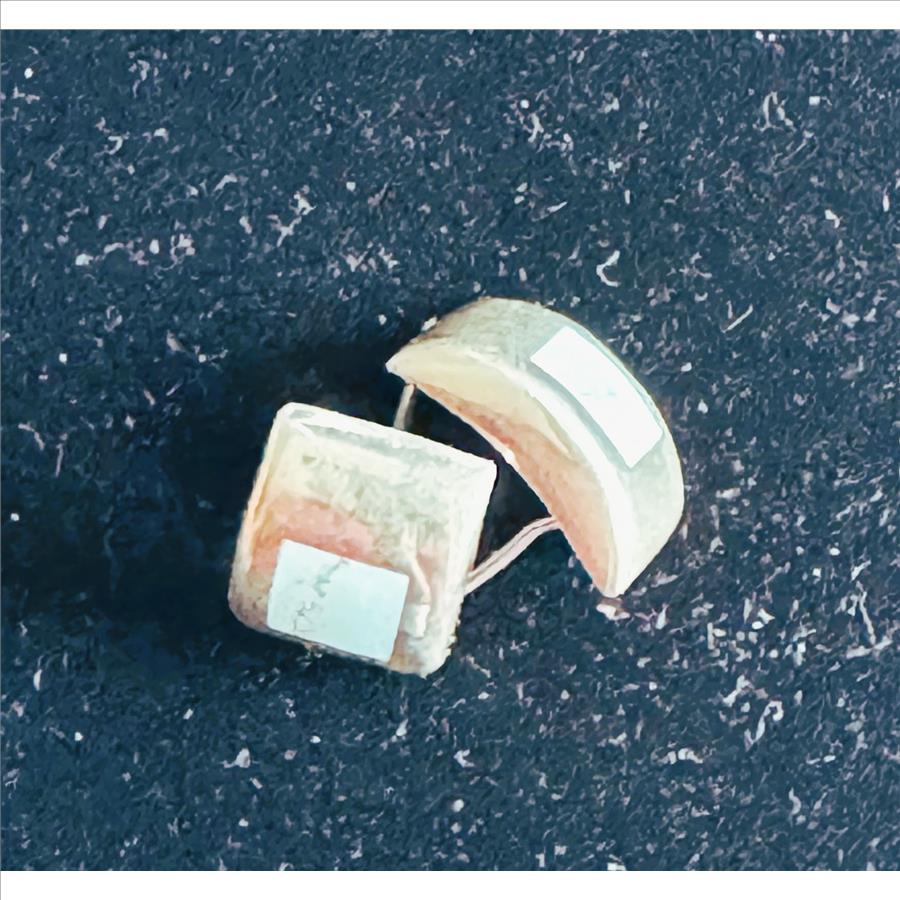 VINTAGE MEXICO STAMPED STERLING SILVER CERULEITE CUBE EARRINGS
