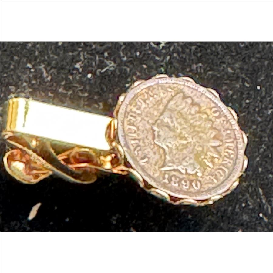 VINTAGE NS TIE CLIP WITH 1890 INDIAN HEAD PENNY CENTER PIECE