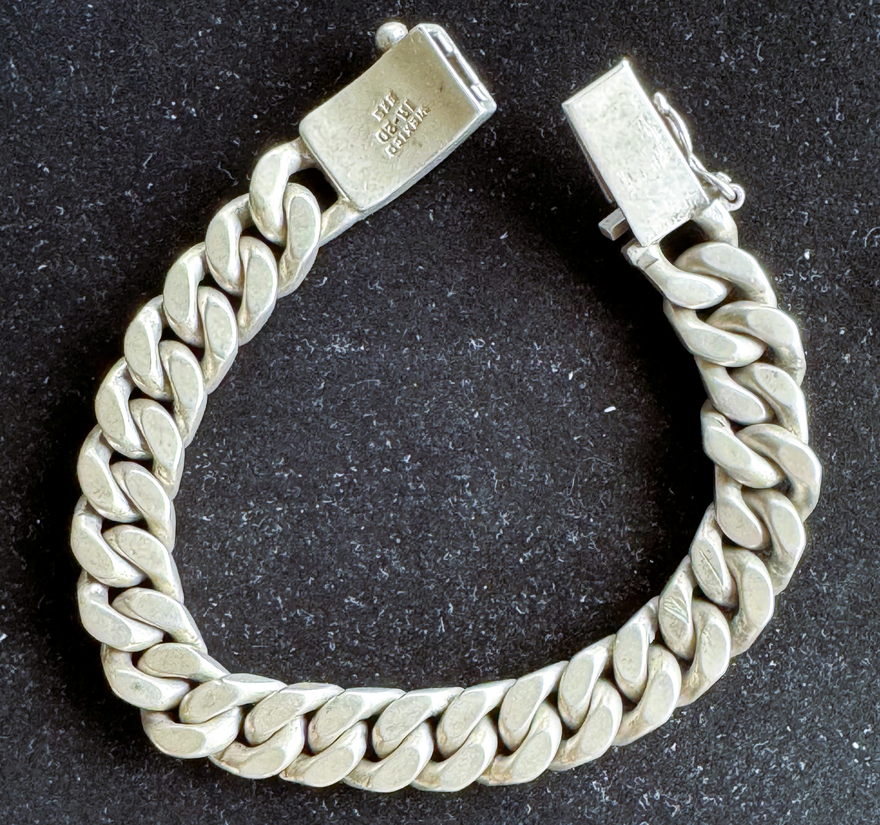 VINTAGE OLD QUALITY MADE & SIGNED MEXICO, CUBAN LINK SOLID (VERY HEAVY) (125g) BRACELET, .925 STERLING SILVER 9" X 1/2 W, CLASSIC