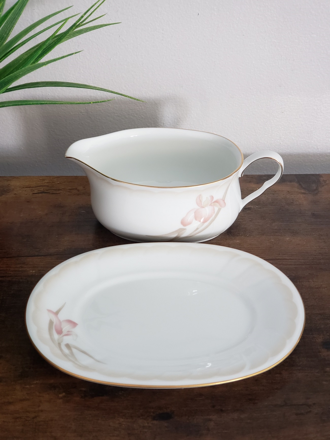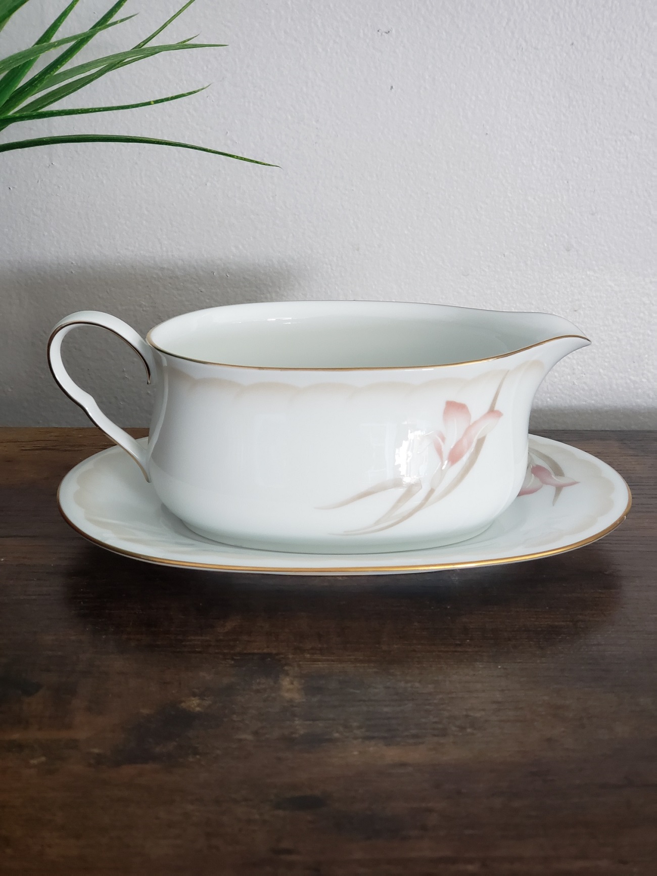 Elegant vintage Noritake Ireland 3360 Sonata gravy boat and under plate