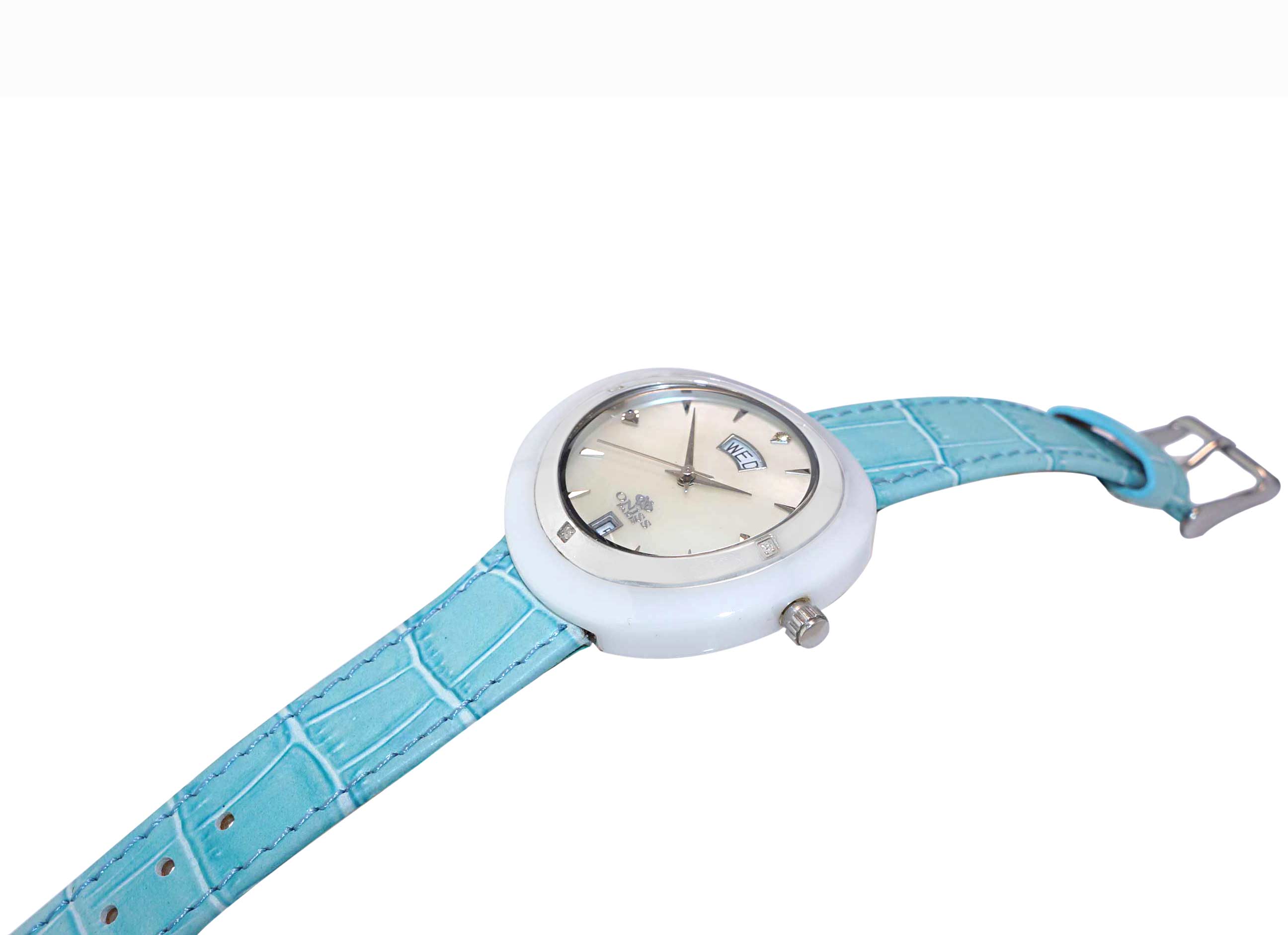 dial (MOP) White Mother of Pearl, ACCENTED WITH 7 PCS GENUINE DIAMONDS ON THE BEZEL AND DIAL