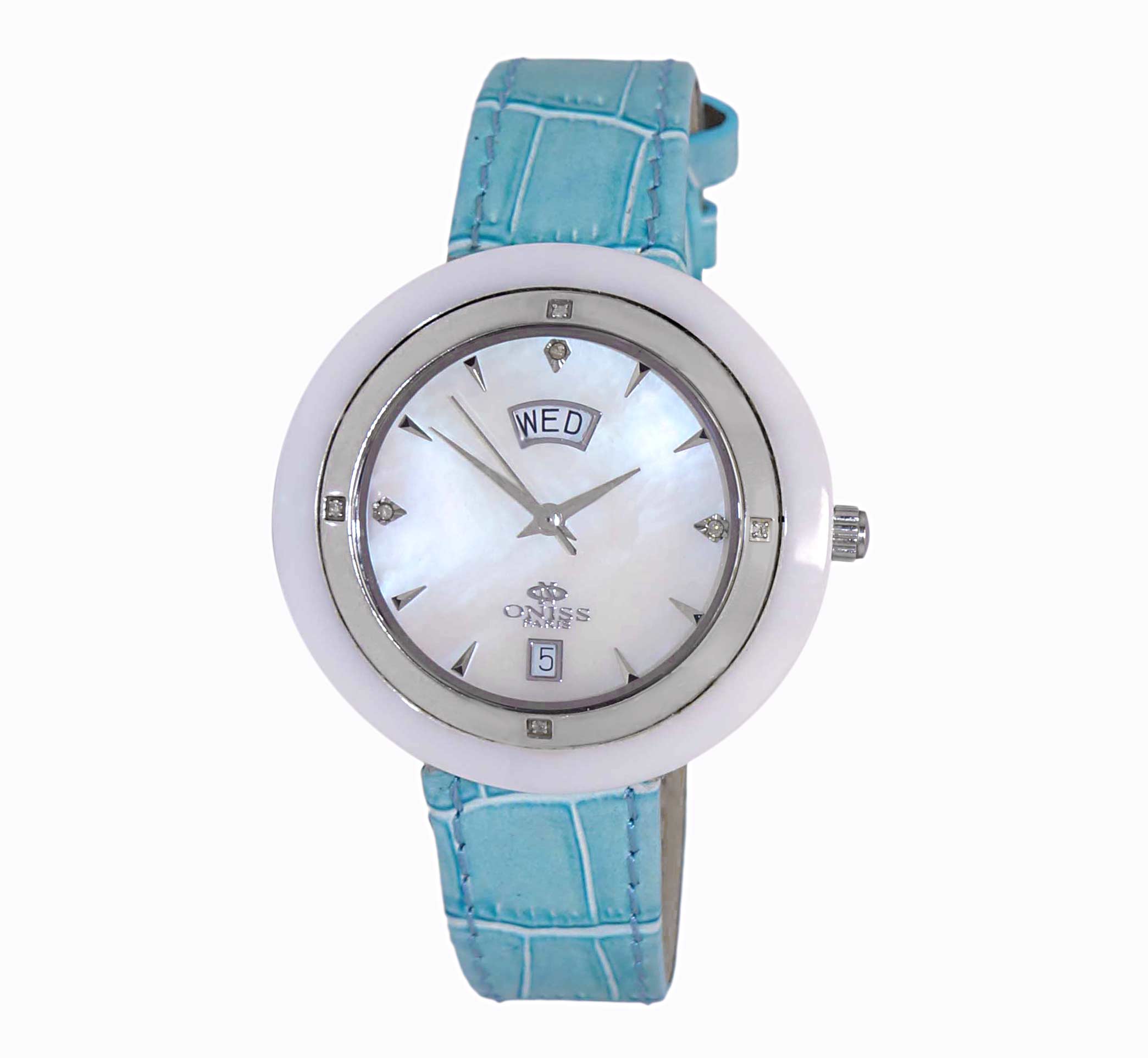 dial (MOP) White Mother of Pearl, ACCENTED WITH 7 PCS GENUINE DIAMONDS ON THE BEZEL AND DIAL