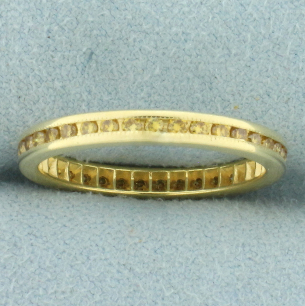 Yellow Diamond Channel Set Stacking Ring in 18k Yellow Gold