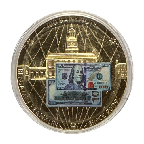- $100 Benjamin Franklin Banknote Commemorative Coin - Gold-Layered