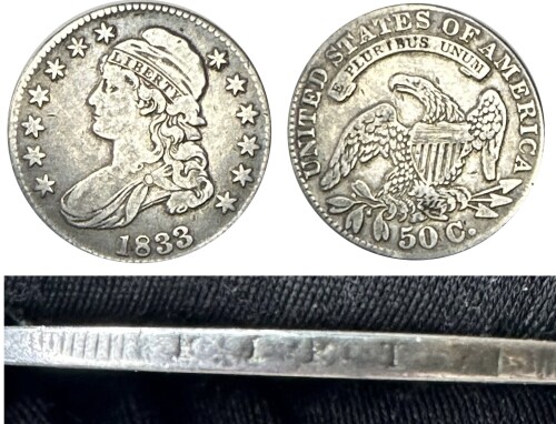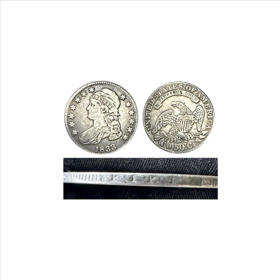 - 1833 U.S. Silver Capped Bust Lettered Edge - 50 Cent Coin - Beautiful Detail