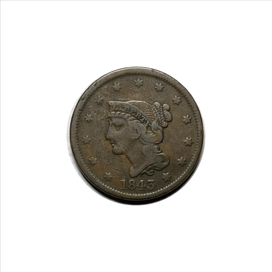 * 1843 U.S. Liberty Head Braided Hair Large Cent