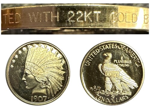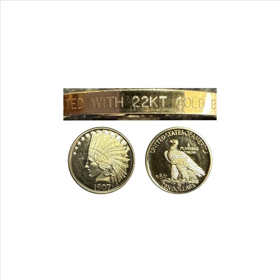 - 1907 U.S. Ten Dollar Indian Head Eagle Coin - Copy - Plated in 22k Gold