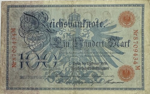 - 1908 German 100 Mark Reichsbanknote - Red Seal