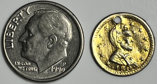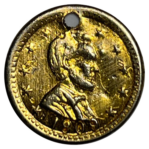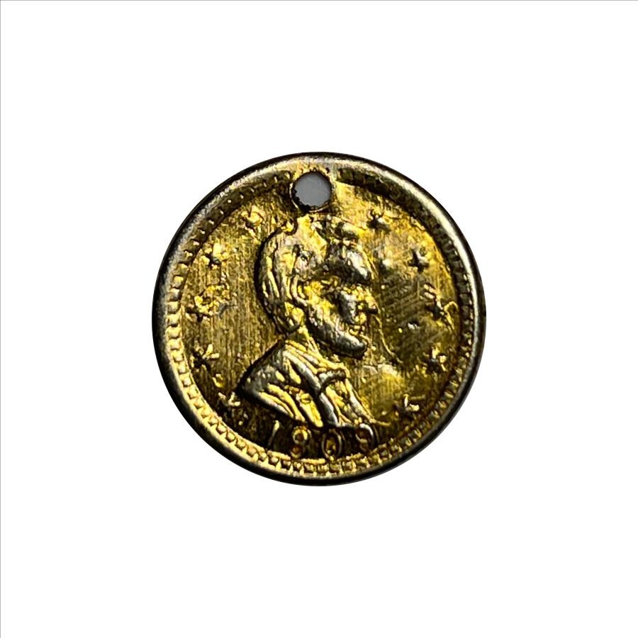 * 1909 Dated Gold Layered Holed Lincoln Medal (Dime shown for size comparison)
