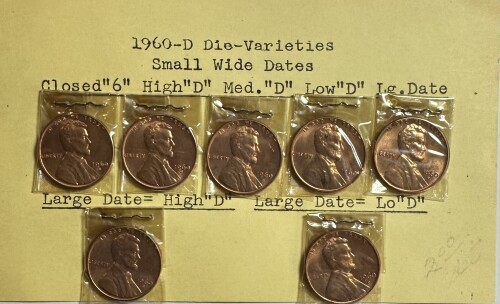- 1960-D US. Lincoln Cent Die Varieties - Small Wide Dates - 7 Coins