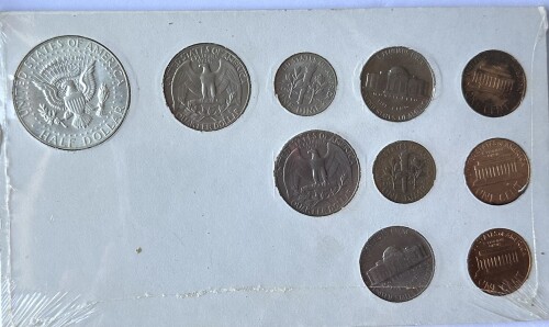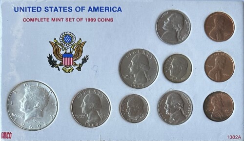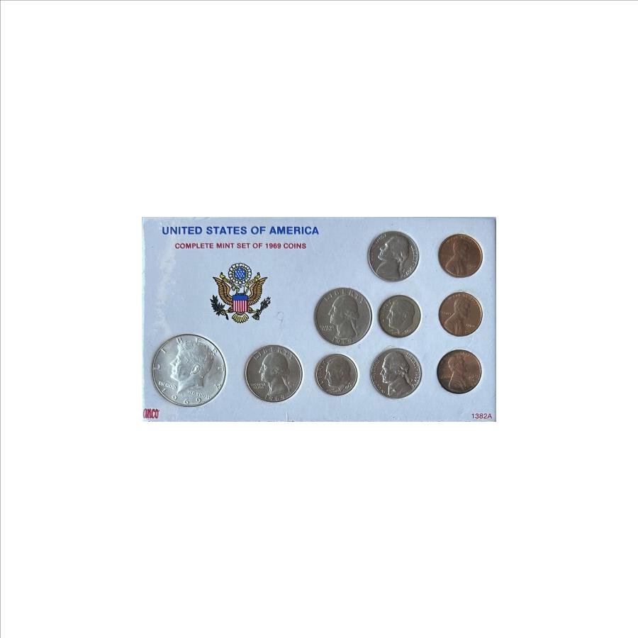 - 1969 (D,S&P) U.S. Complete Mint Set of 1969 Coins - 10 Coins including 1969-D Silver Kennedy Half