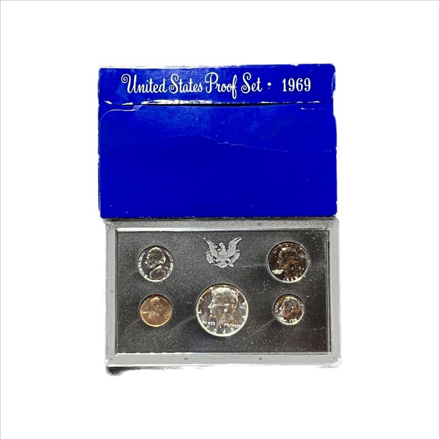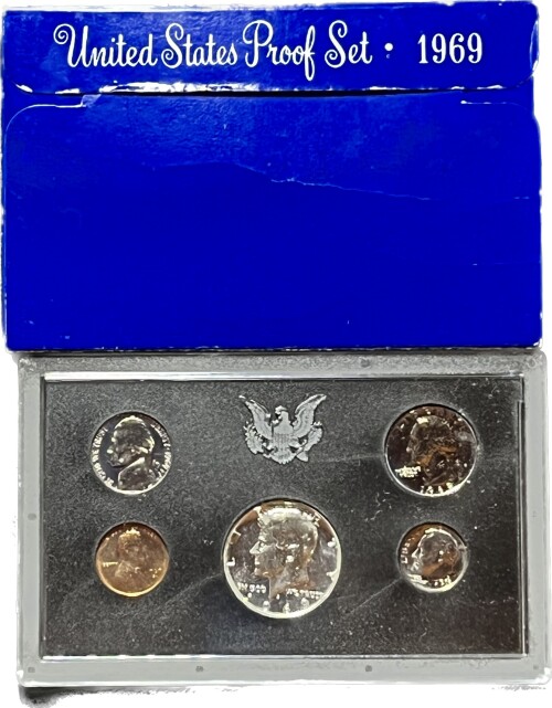 * 1969-S U.S. Proof Set - 5 Coins in Original Mint Packaging with Silver Kennedy Half