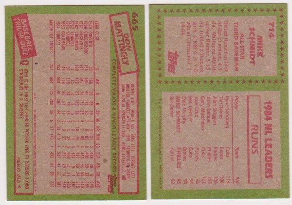 1985 Topps Don Mattingly #665 + Mike Schmidt #714 Card Pair