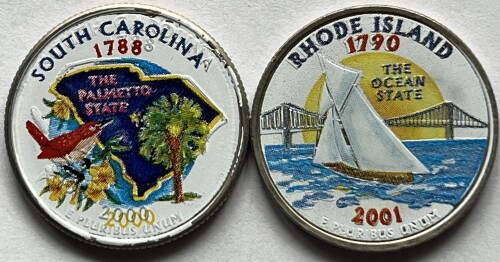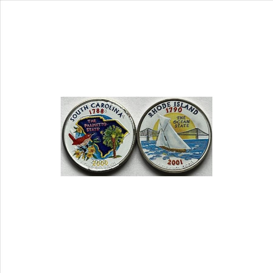 * 2000-D & 2001-D U.S. Colorized State Quarters - South Carolina & Rhode Island - Set of 2