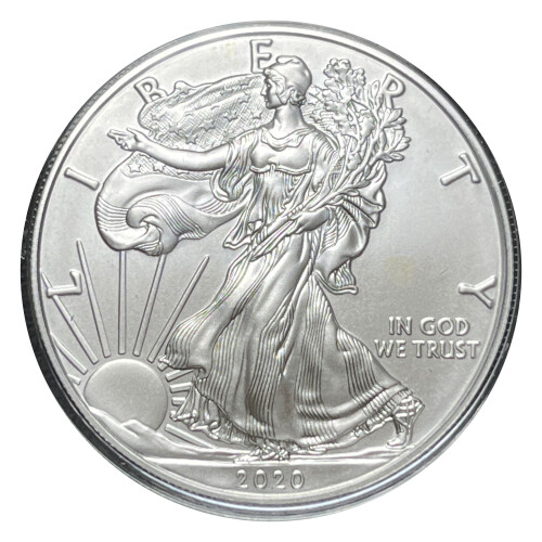 . 2020-W US Silver American Eagle One Dollar ($1) One Ounce Silver Uncirculated Coin in Original Mint Box