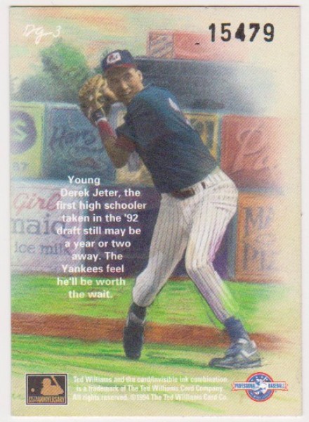 Derek Jeter Rookie - 1994 Ted Williams Company Gardiner Collection #DG-3 Dan Gardiner Insert Card