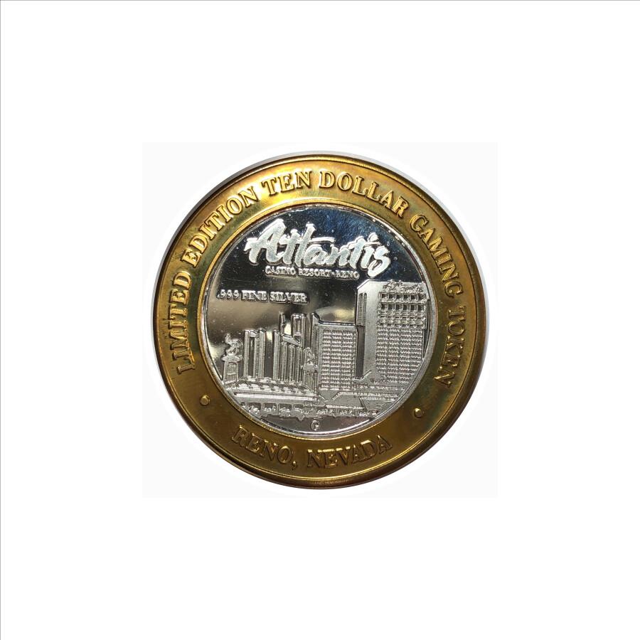 # Silver Strike!  Collector's Series $10 Silver Gaming Token -Atlantis Casino Resort Reno Nevada - .999 Fine Silver