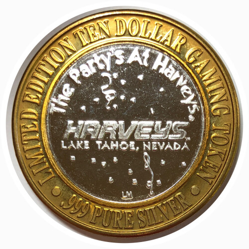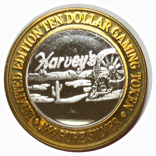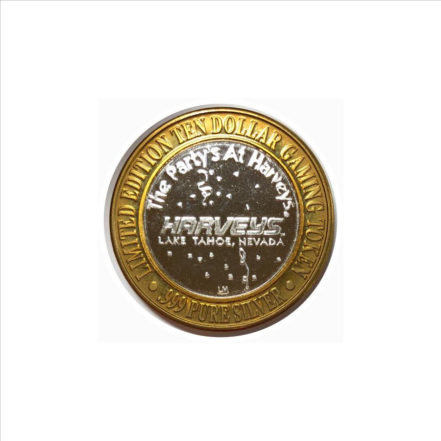 # Silver Strike!  Collector's Series $10 Silver Gaming Token -Harvey's Lake Tahoe Nevada - .999 Fine Silver
