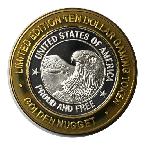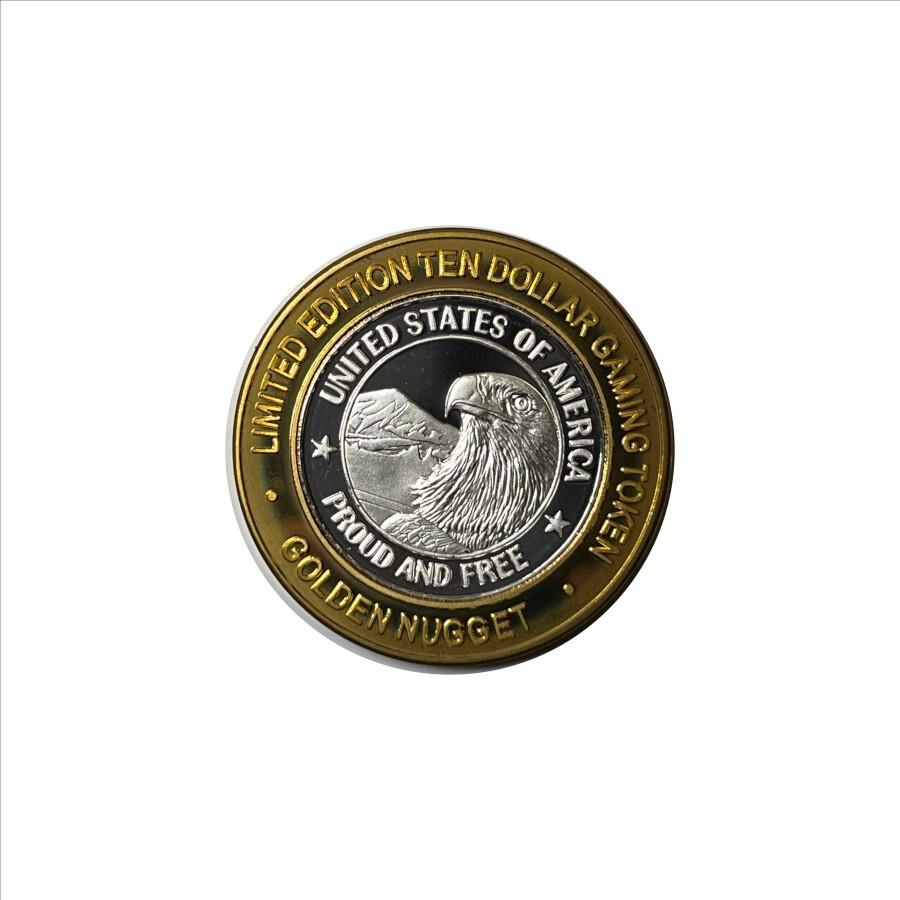 * Silver Strike! Golden Nugget - .999 Silver - Limited Edition $10 Gaming Token - USA Eagle - Proud & Free