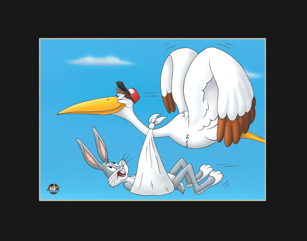 This limited-edition matted lithograph is entitled “Special Delivery.”  This image is a reproduction of a publicity cel created by Director Robert McKimson in the early 1960s.  The stork was actually used in several Looney Tunes cartoons, including A Feather In His Hare, released in 1948, under the direction of Chuck Jones, Stork Naked, released under the direction of Friz Freleng in 1955, and Apes of Wrath, released under the direction of Friz Freleng in 1959.  This edition is limited to 5000 hand-numbered pieces. Licensed, presented matted with COA - 14x11