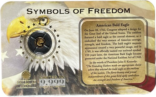 *  Symbols of Freedom - American Bald Eagle - 14K Gold Replica Coin - 0.5 Grams - American Mint - One of 9,999
