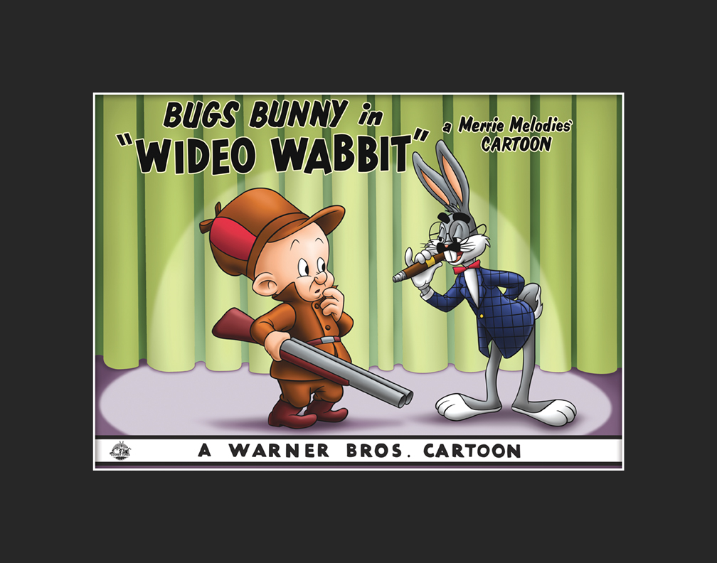 This limited-edition lithograph was taken from the Lobby Card entitled “Wideo Wabbit” (1956).  Wideo Wabbitt is a cartoon featuring Bugs Bunny and Elmer Fudd.  The voice of Bugs Bunny and other characters are played by Mel Blanc while the voice of Elmer Fudd is played by Arthur Q. Bryan.  This edition is limited to 5,000 hand-numbered pieces. Originally, “Lobby Cards” were created to publicize each cartoon and were used by theater owners to display in theater lobbies. Licensed. Presented matted with COA- 14x11