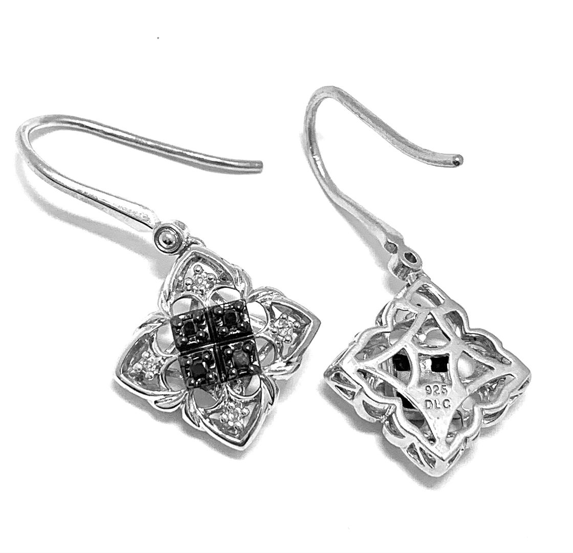 0.25ct Natural Diamond Dangle Earrings Solid 925 Sterling Silver & 14k White Gold Ovr. $169