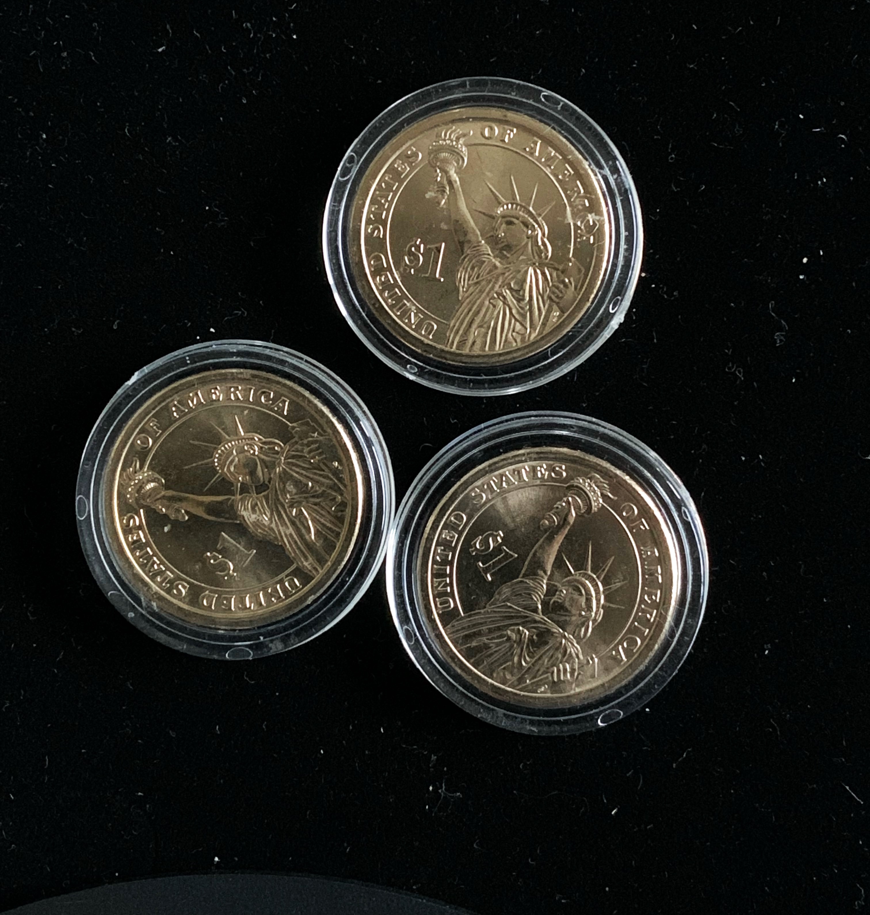 $1 GOLD TONNED PRESIDENTIAL COLLECTION UNC IN CASE (3) COINS