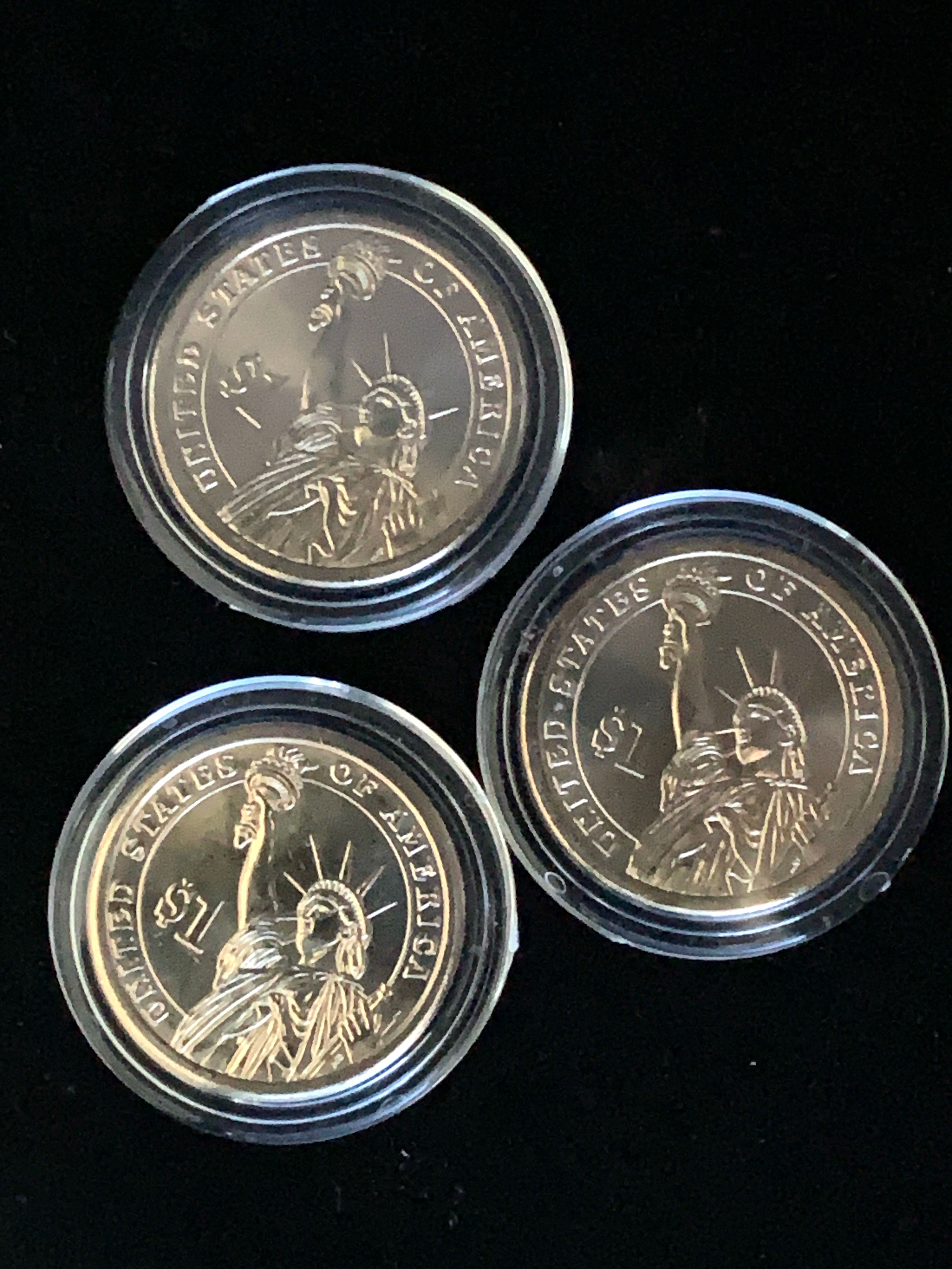 $1 GOLD TONNED PRESIDENTIAL COLLECTION UNC IN CASE (3) COINS
