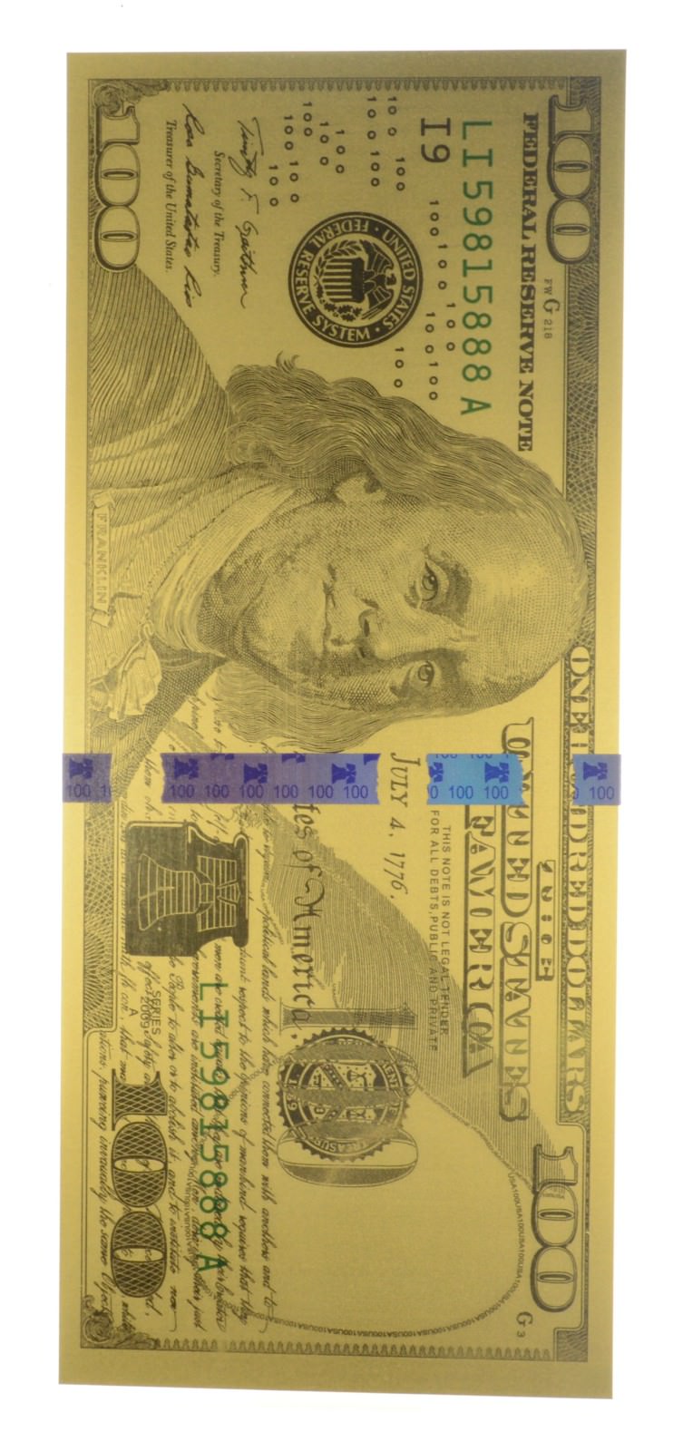 1 Gram .999 Fine Gold Note - $100 Replica Benjamin Franklin Design