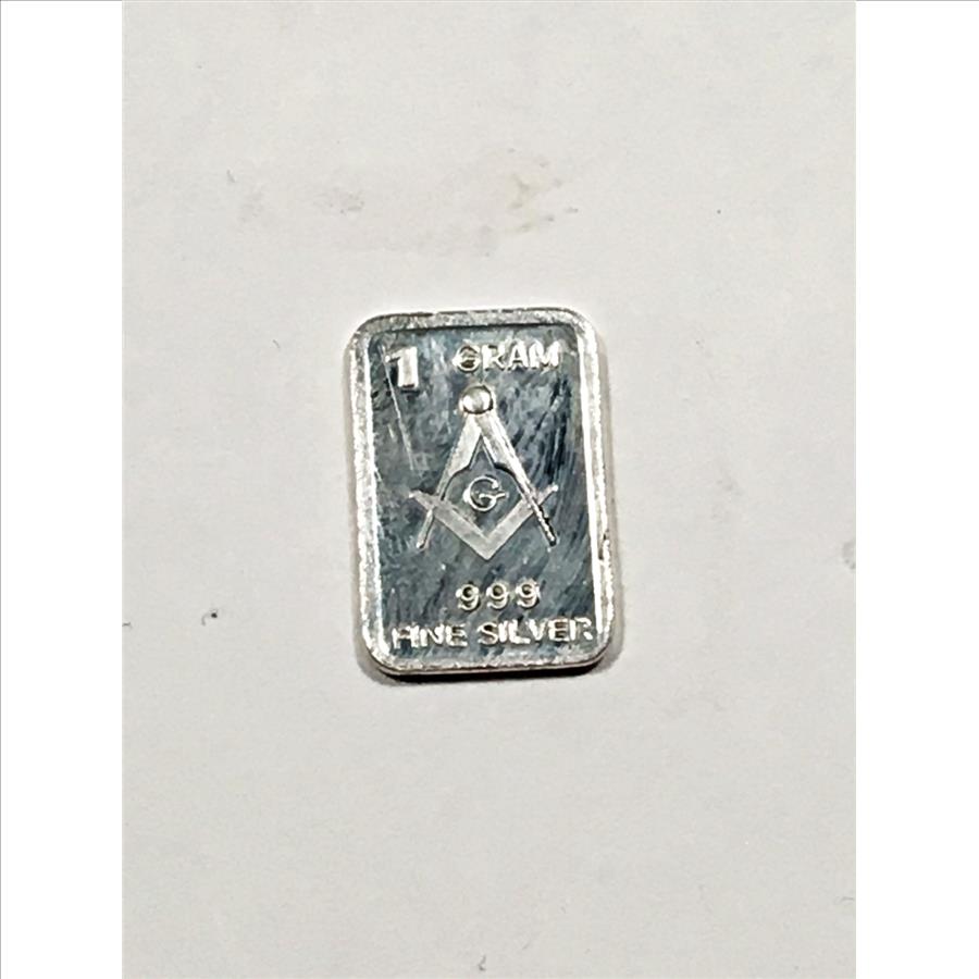 1 Gram .999 Fine Silver Bar*Masonic Symbol
