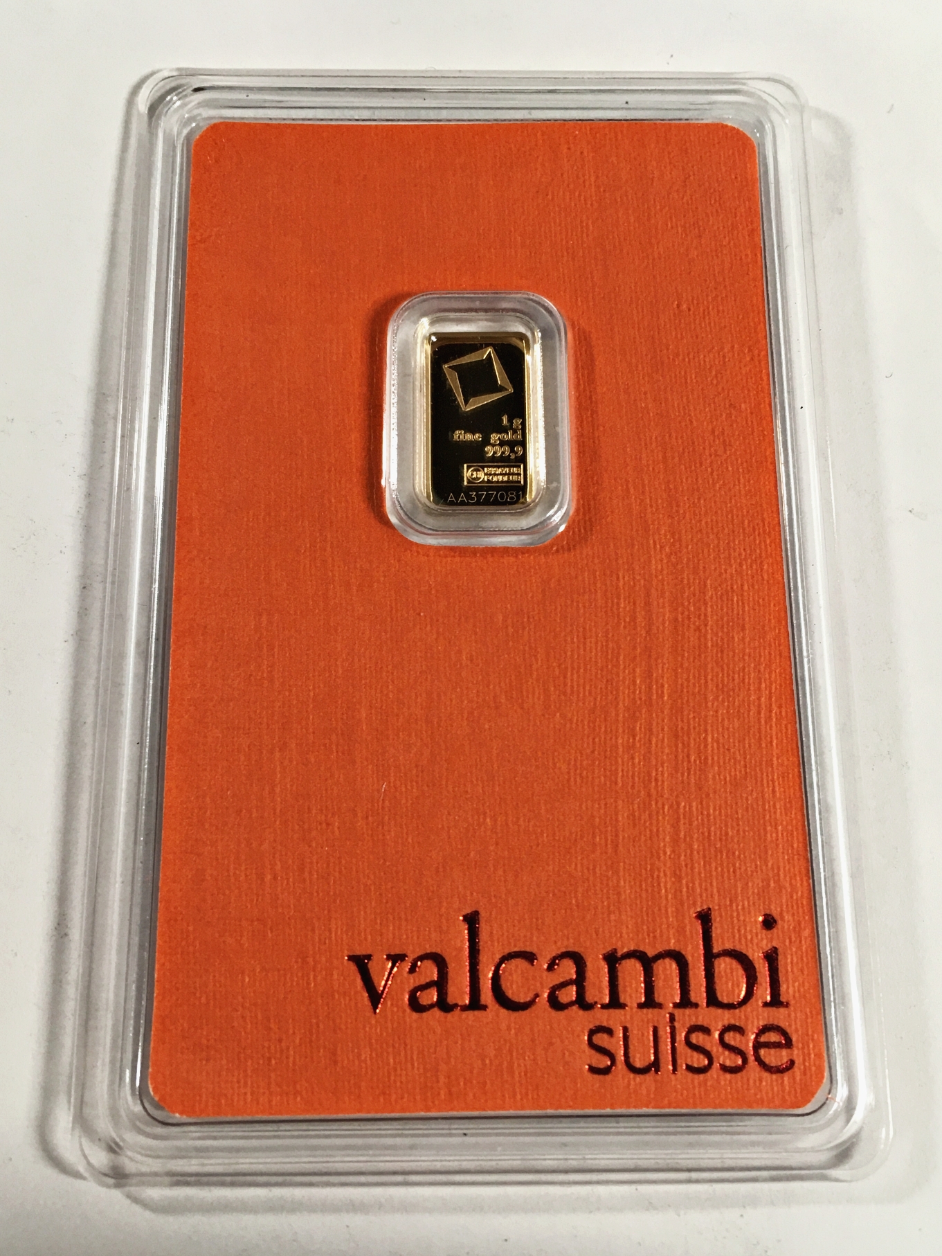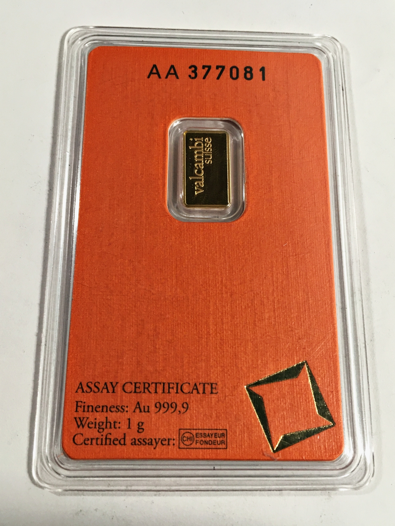 1 Gram .9999 Fine Gold Bar*Valcambi*With Assay Certificate