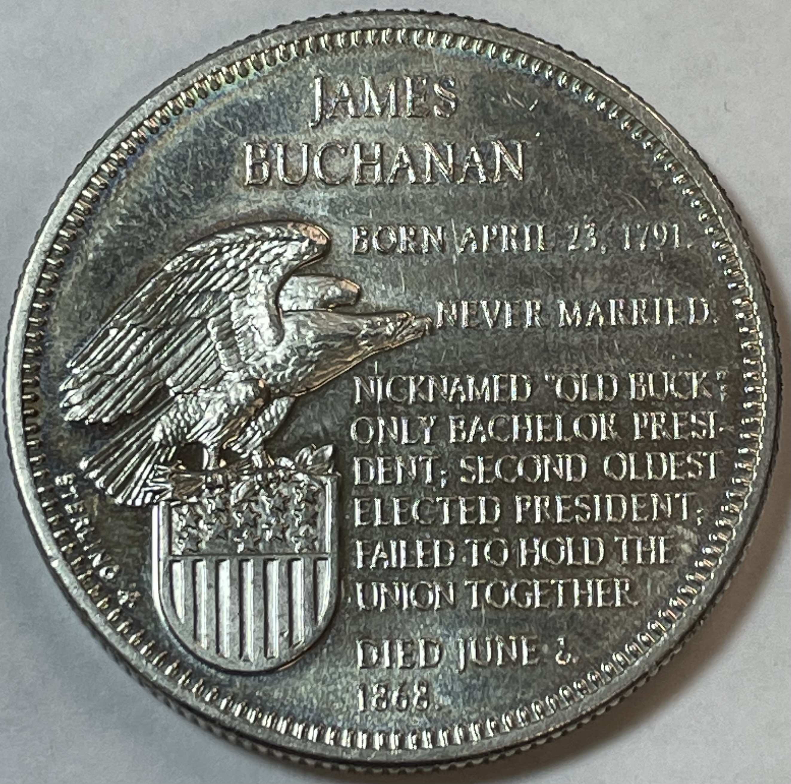 1+ oz Silver James Buchanan Presidential Commemorative Coin/Medal