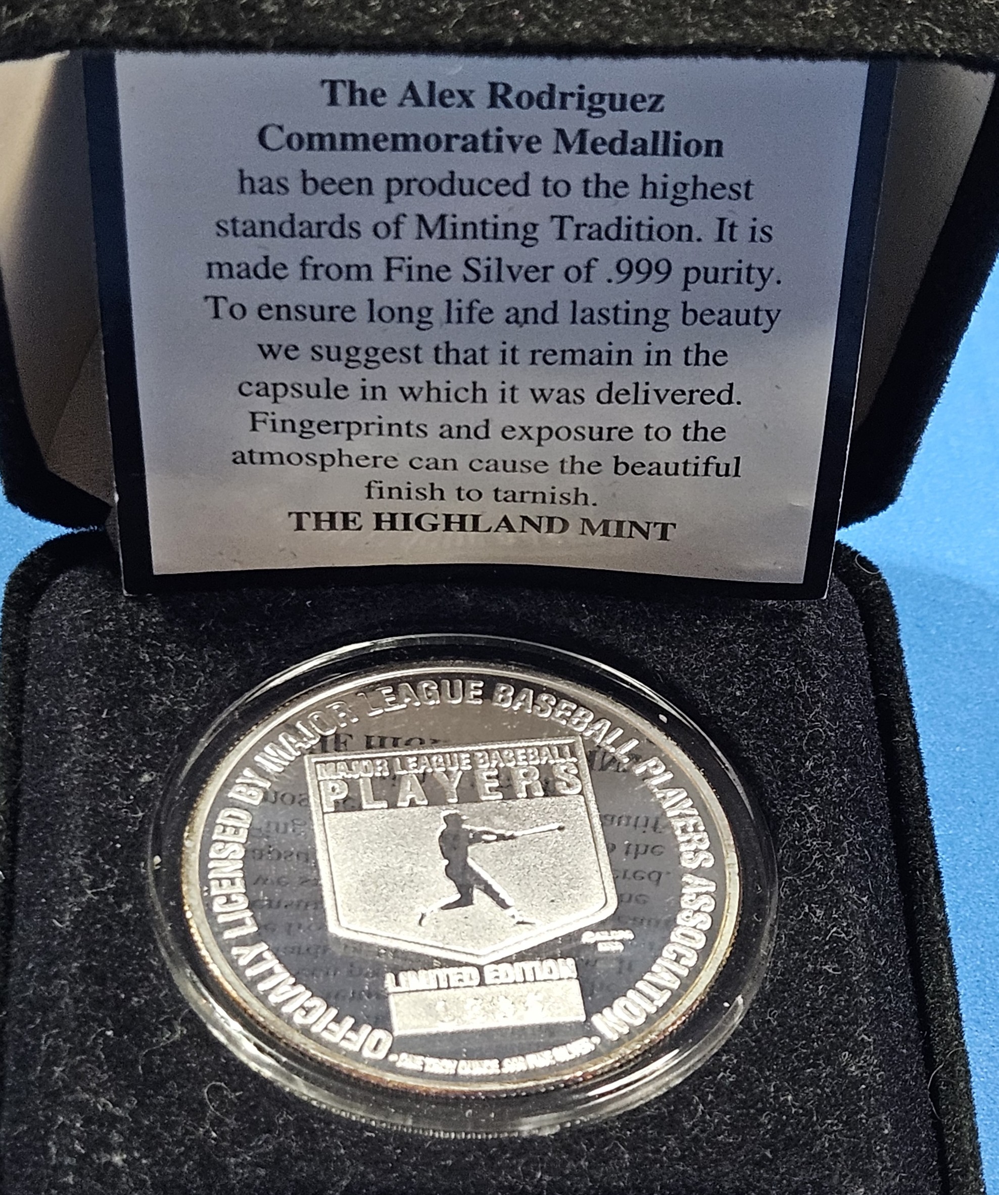 1 Troy Ounce Proof Alex Rodriguez - .999 Silver Round - MLB Players Series Collectible