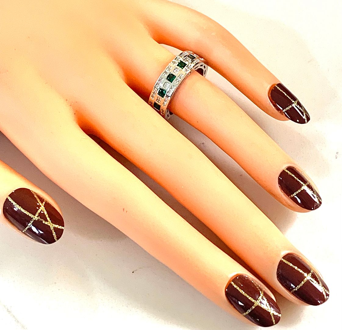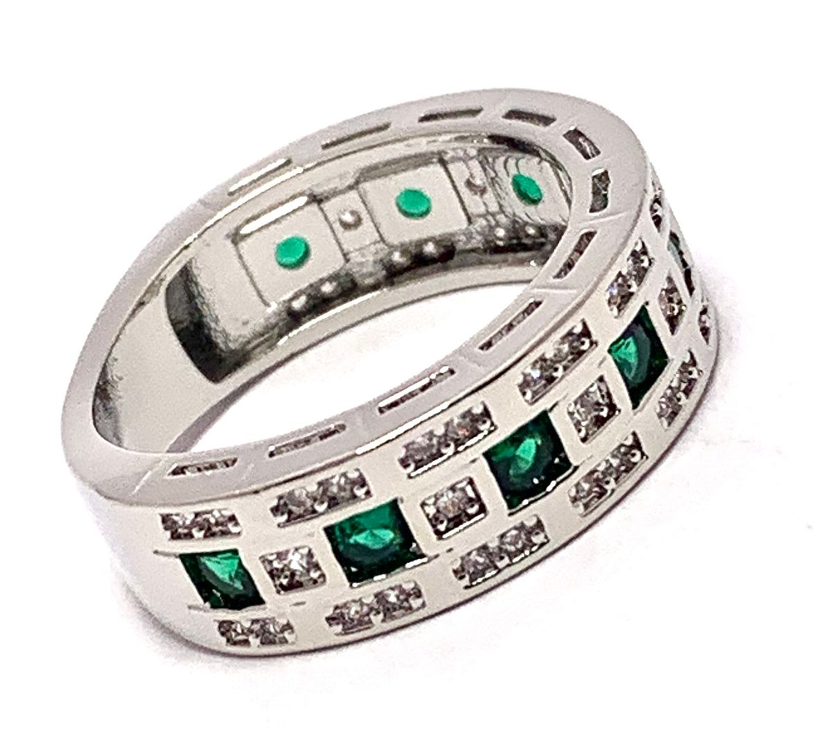 1.00ctw Emerald & Cubic Zirconia 18k White Gold Overlay Ring / Band