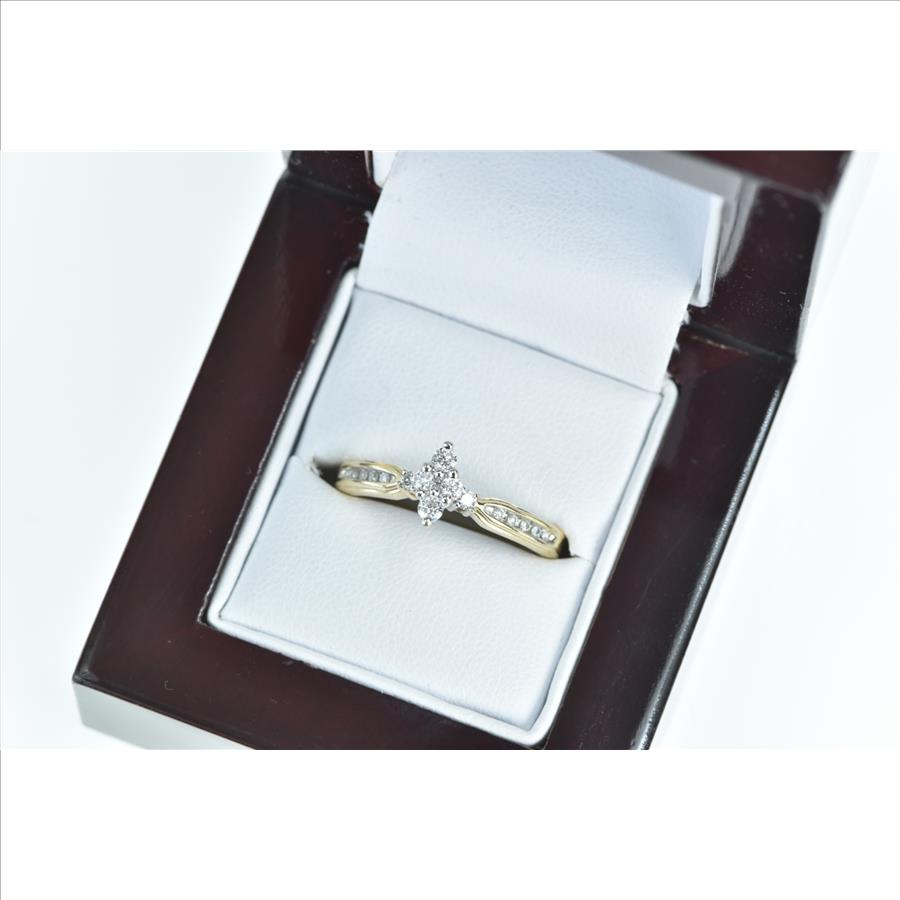 Item:  10K 0.25 Ctw Diamond Cluster Vintage Promise Yellow Gold Ring, Size 9
