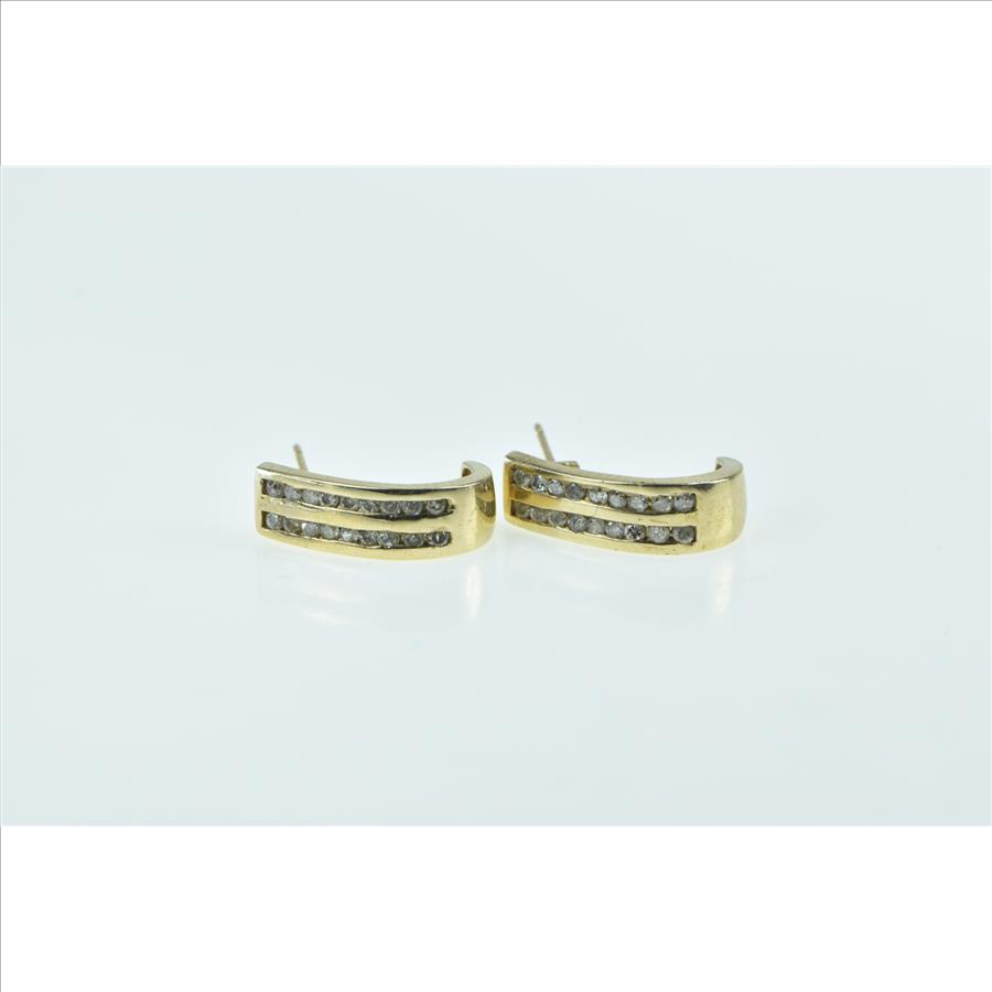 Item:  10K 0.90 Ctw Diamond Curved Bar Semi Hoop Yellow Gold Earrings