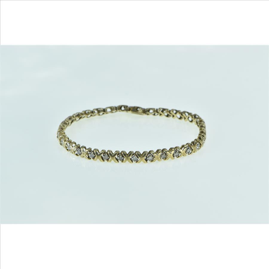 Item:  10K 0.90 Ctw Diamond X Link Criss Cross Tennis Yellow Gold Bracelet 7.25"