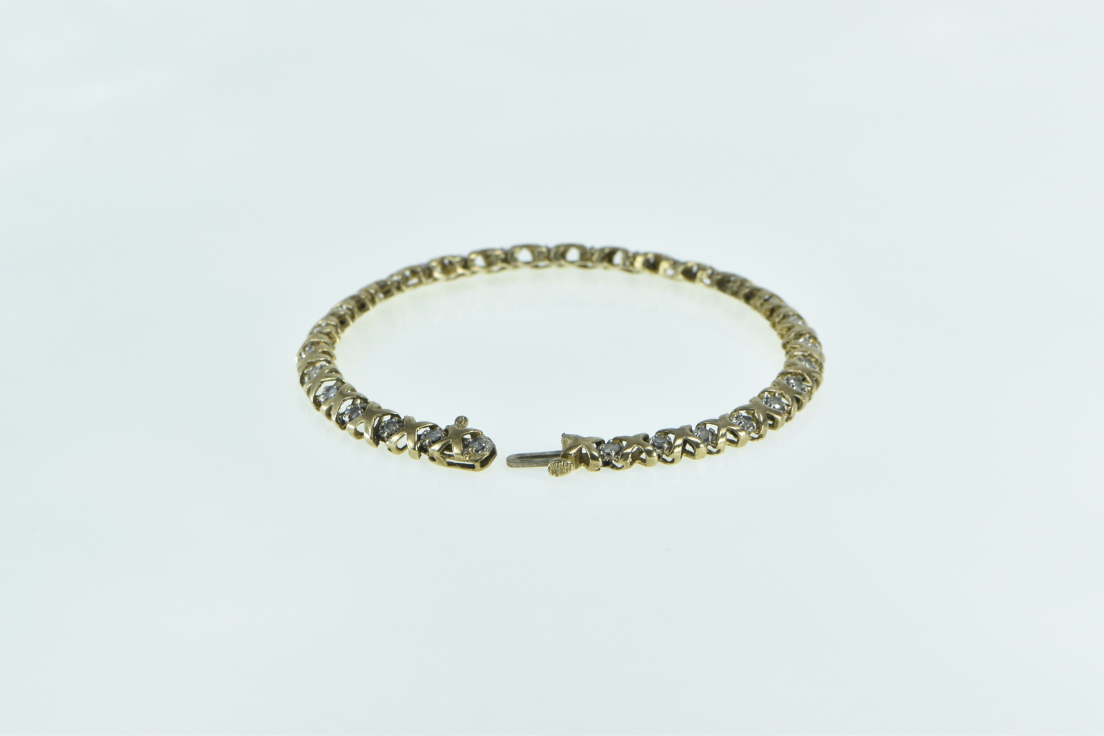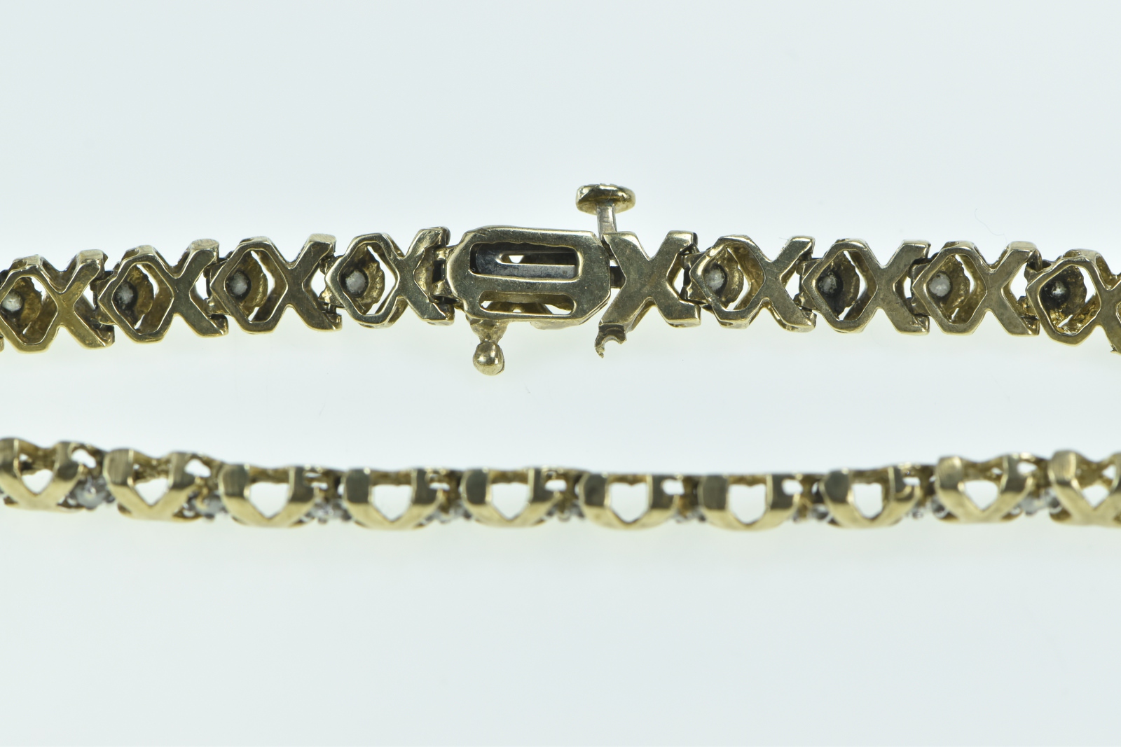 10K 0.90 Ctw Diamond X Link Criss Cross Tennis Yellow Gold Bracelet 7.25"