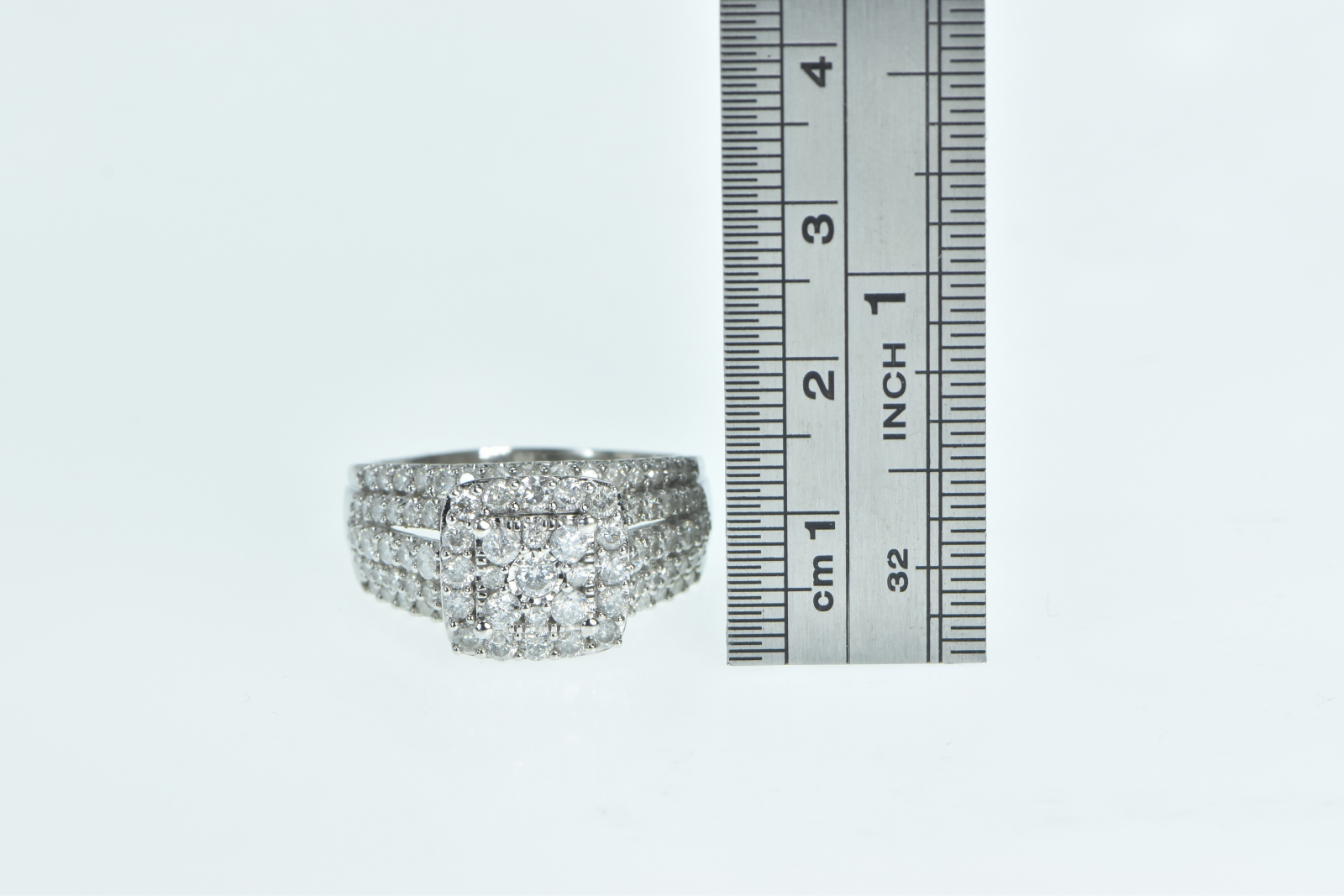 Item:  10K 1.08 Ctw Diamond Encrusted Engagement White Gold Ring, Size 10