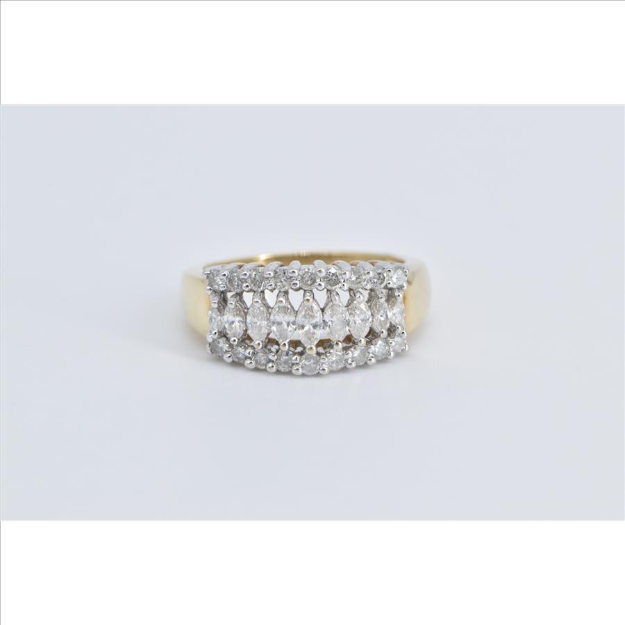 Item:  10K 1.14 Ctw Marquise Diamond Fashion Band Yellow Gold Ring, Size 7