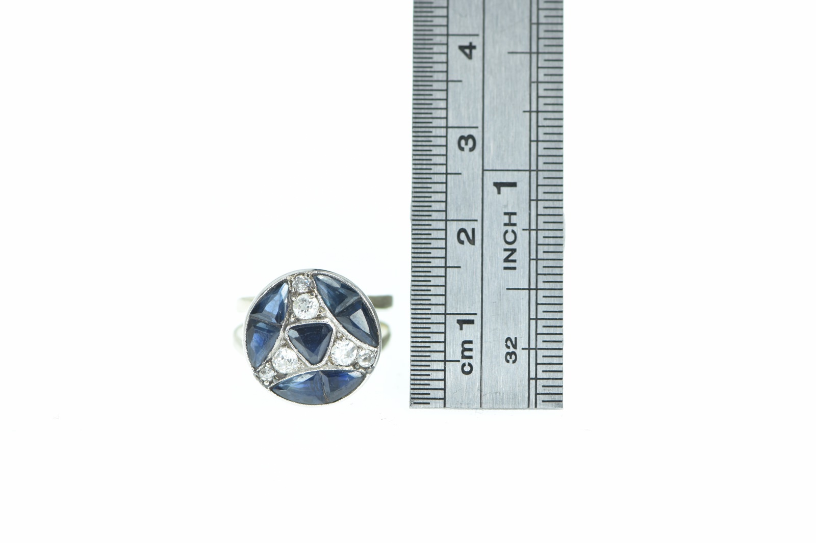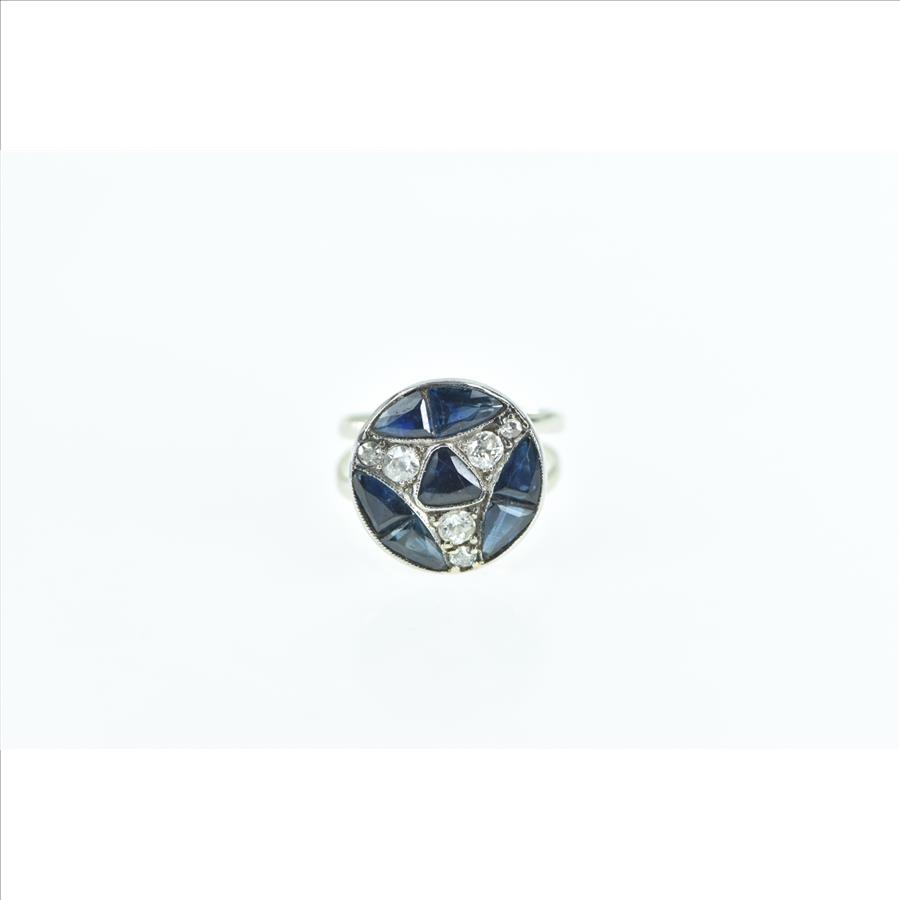 10K 1.30 Ctw Sapphire Diamond Art Deco Plat White Gold Ring, Size 5.75