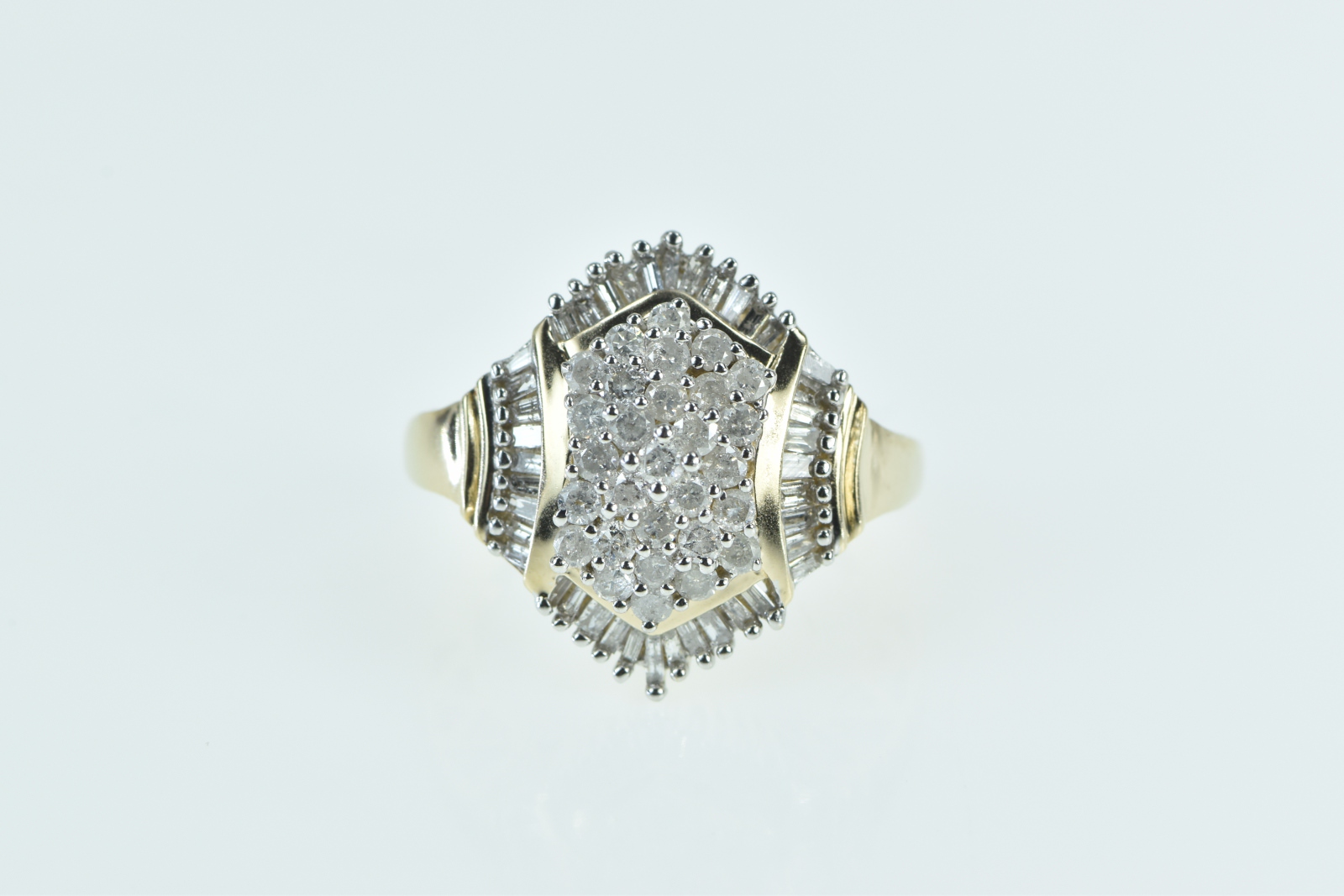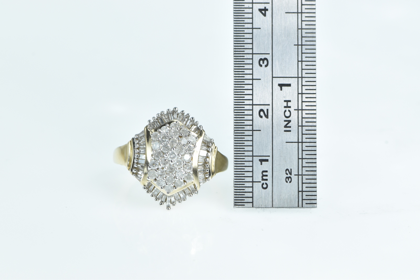 10K 1.70 Ctw Baguette Halo Diamond Cluster Yellow Gold Ring, Size 7