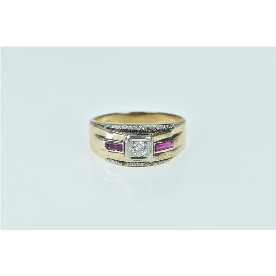 10K 1940's Diamond Syn. Ruby Wedding Band Yellow Gold Ring, Size 10.25