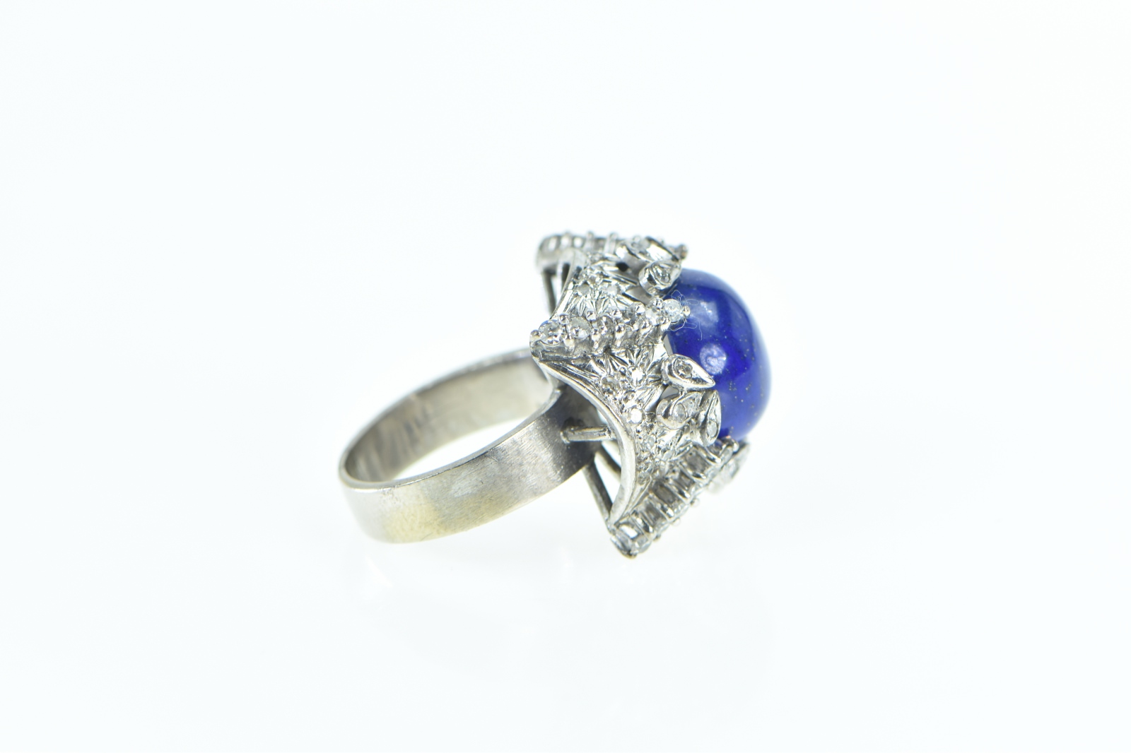 10K 1940's Lapis Lazuli Diamond Cocktail White Gold Ring, Size 5.75
