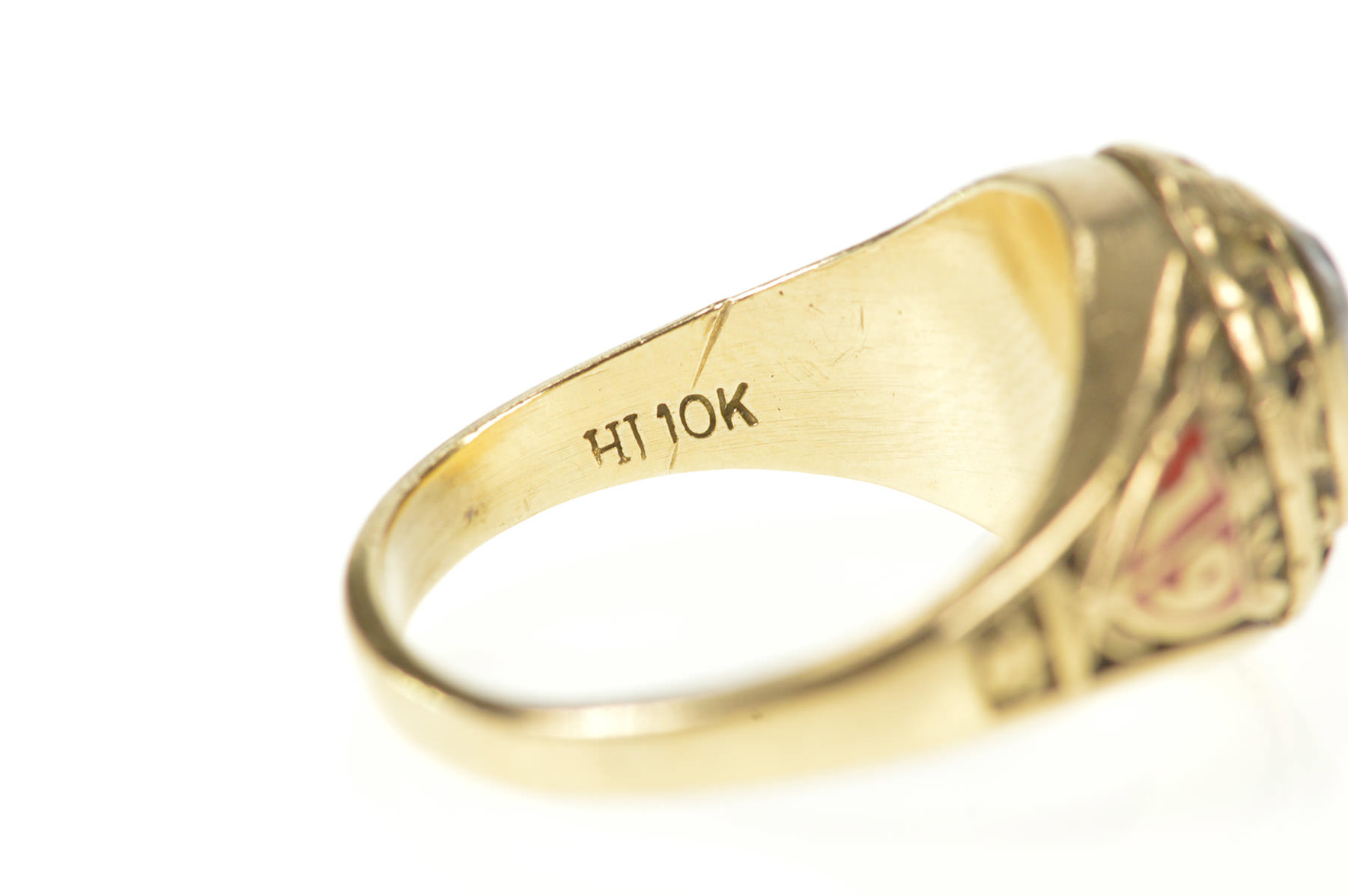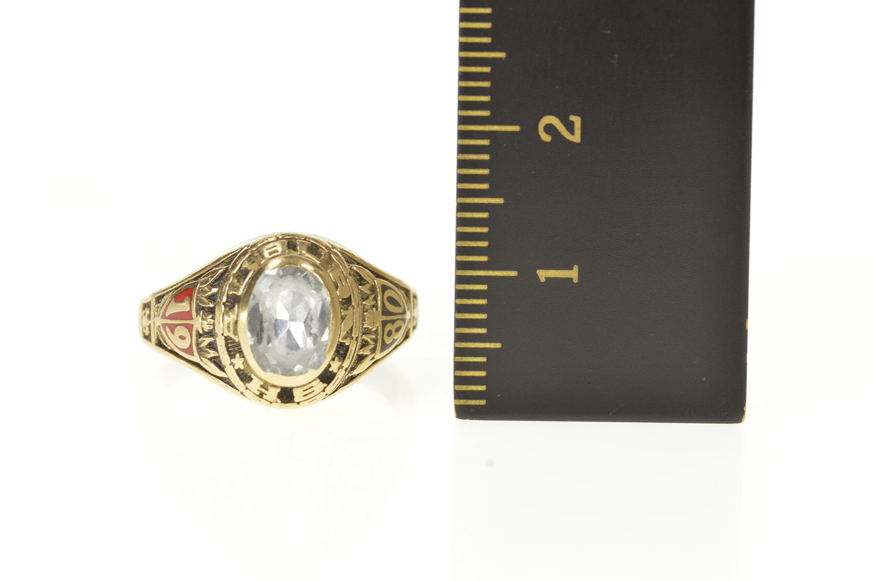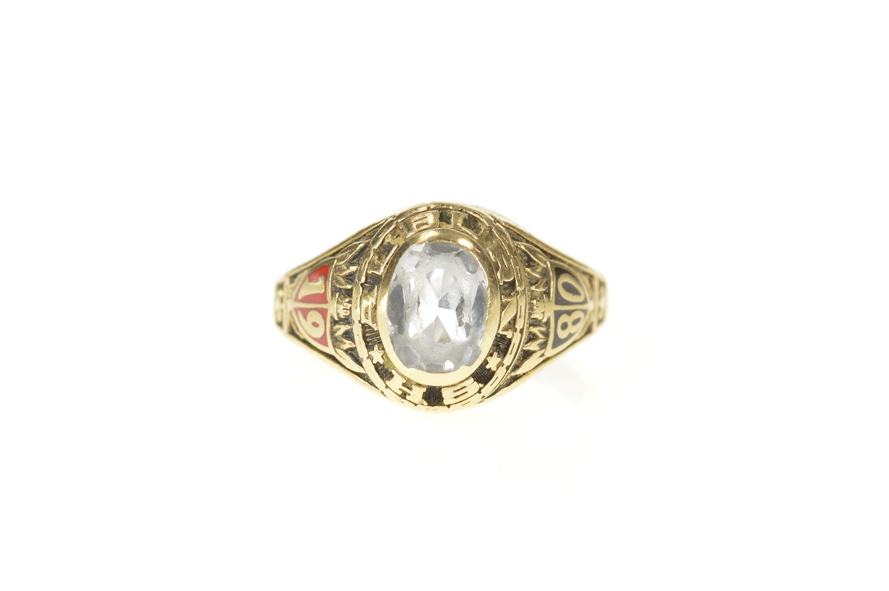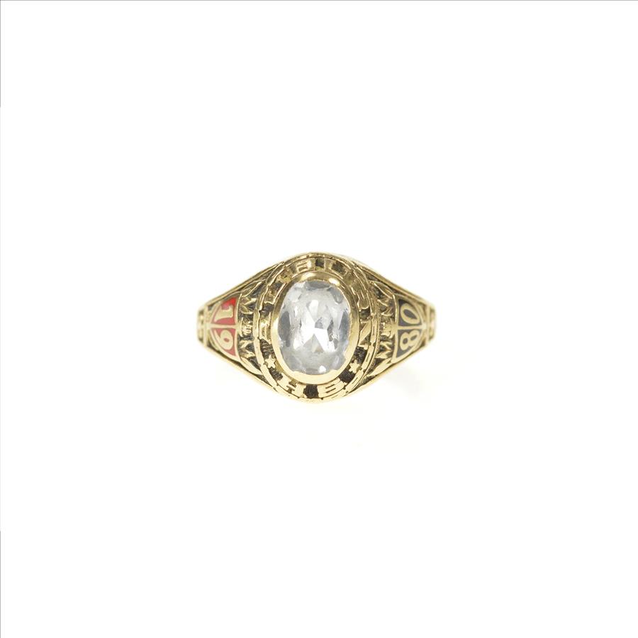 Item:  10K 1980 Auburn High School Ornate Class Yellow Gold Ring, Size 4.75